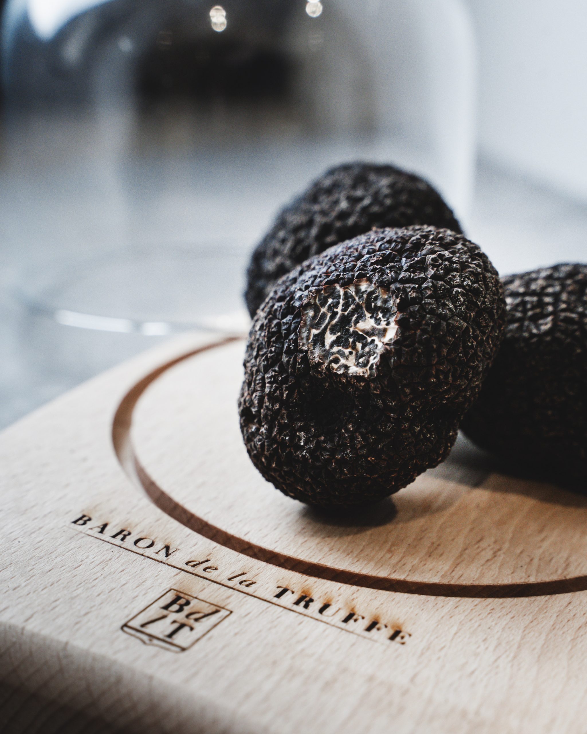 Truffes noires fraîches (Tuber Melanosporum), lavées, brossées canifées selon la norme en vigueur et expédiées sous vide en 24h par Chronofresh (garantissant le respect de la chaîne du froid).
