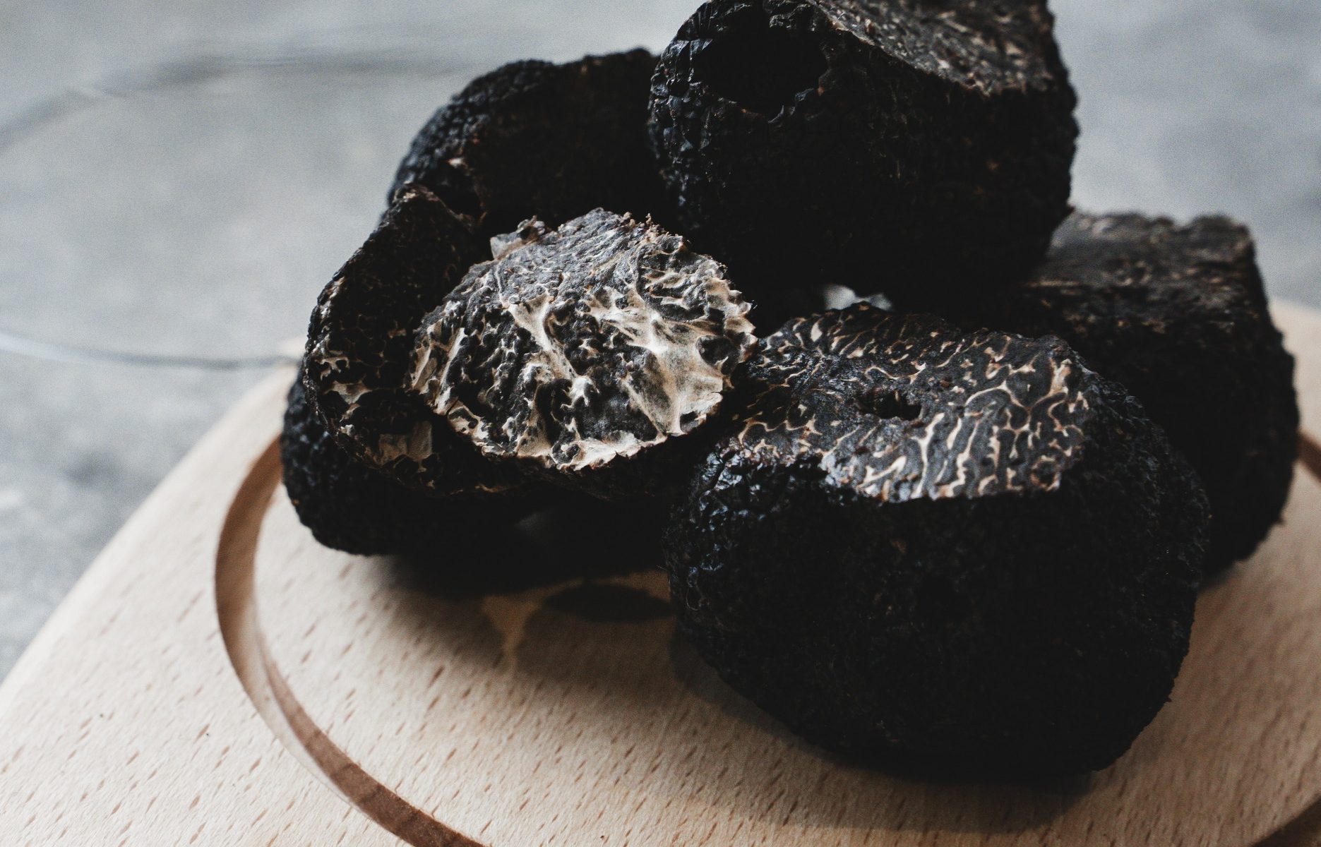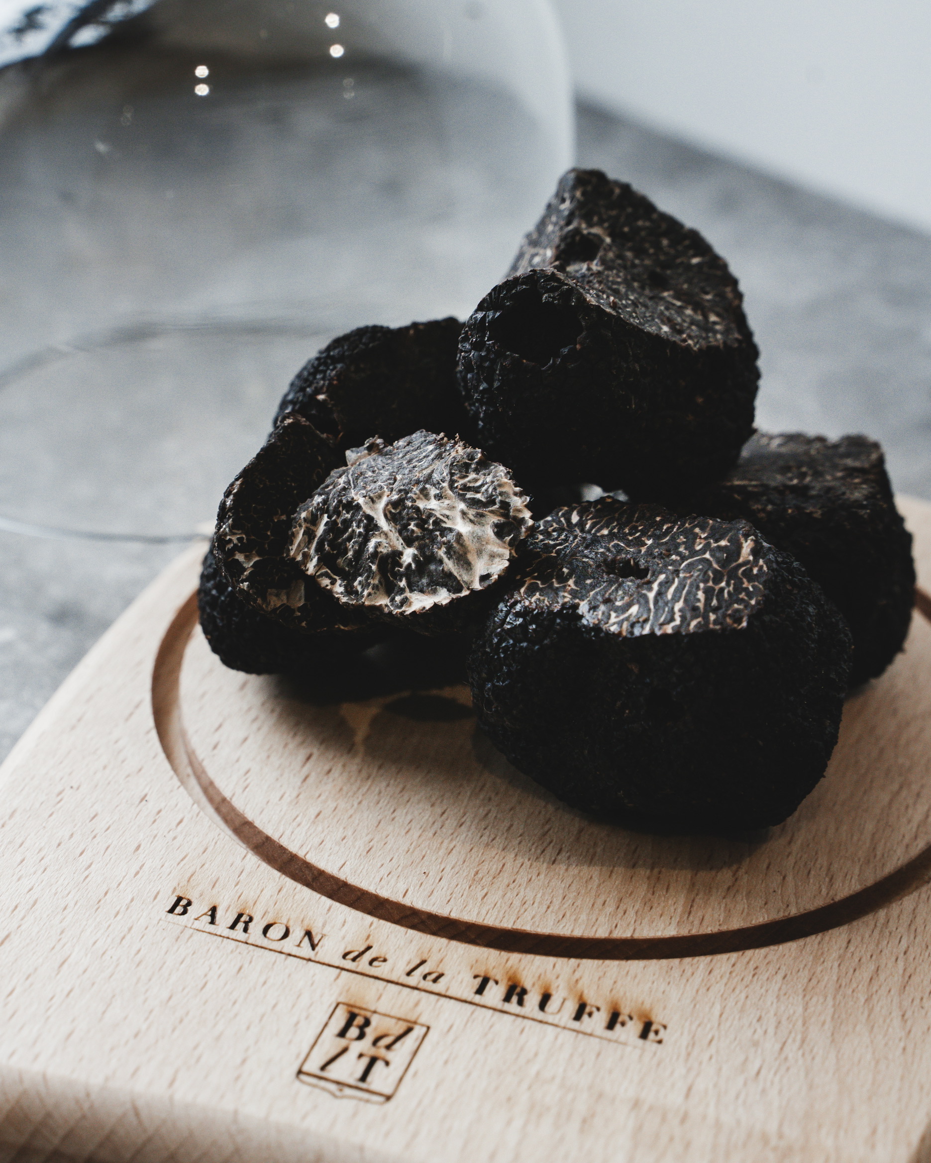 Morceaux de truffes noires fraîches (Tuber Melanosporum), lavées, brossées et expédiées sous vide en 24h par Chronofresh (garantissant le respect de la chaîne du froid).